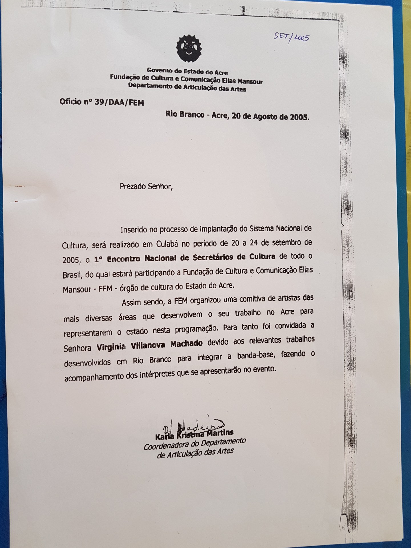1º Encontro Nacional de Secretários de Cultura Representante do estado do Acre Cuiabá/MT – 2005 Relacionado