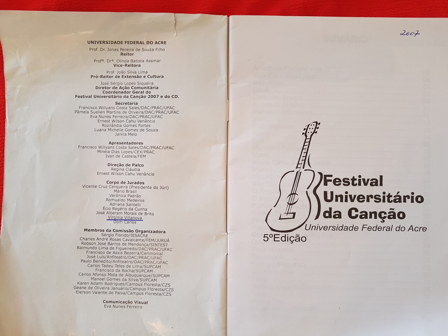 V Festival Universitário de Canção Universidade Federal do Acre Rio Branco/AC – 2007